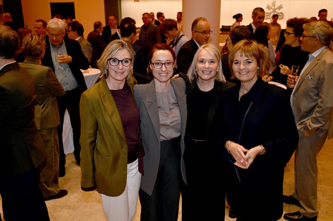 Spannende Gespräche und super Frauenpower am Neujahrsapéro der HKBB mit v.r.n.l.: Ruth Metzler, Präsidentin Swiss Olympic und VRP Switzerland Global Enterprises, Elisabeth Schneider Schneiter, Präsidentin HKBB, Nationalrätin BL, Regula Berger, CEO der Basler Kantonalbank, Maya Graf, Ständerätin BL